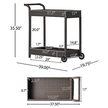 35.5''H X 38.25''W X 19''D Ebern Designs Woven Wicker Calarco Bar Cart $44.99 + Free Shipping