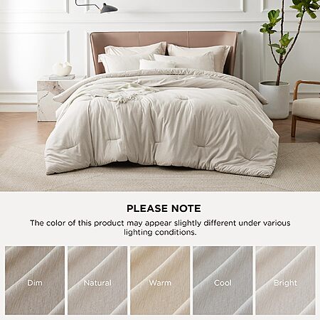 Bedsure Comforter Set - Beige, Queen Size, Cationic Dyed Bedding Set, 3 Pieces, 1 Comforter & 2 Pillow Shams $27.98