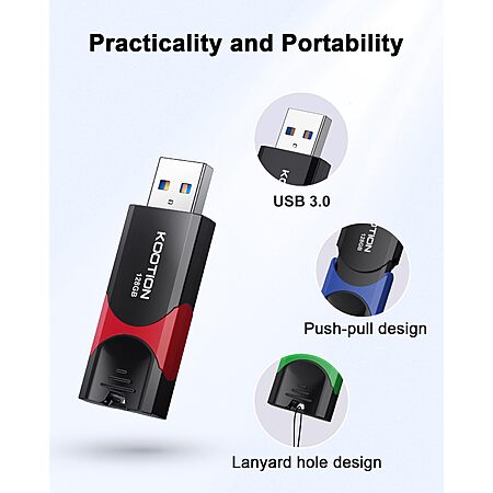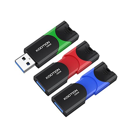 KOOTION 128GB USB 3.0 Flash Drive 3 Pack USB Flash Drives Multicolor USB Drive Retractable $29.99