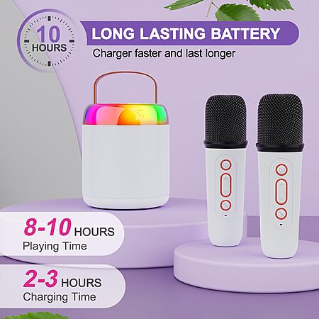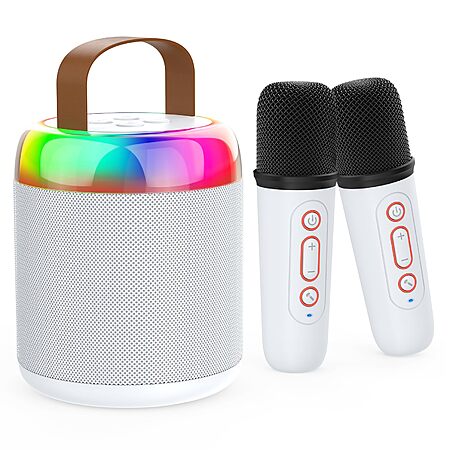 Iyoyo Mini Karaoke Machine for Kids Portable Bluetooth 5.3 Speaker Led Lights with 2 Wireless Microphones $9.98