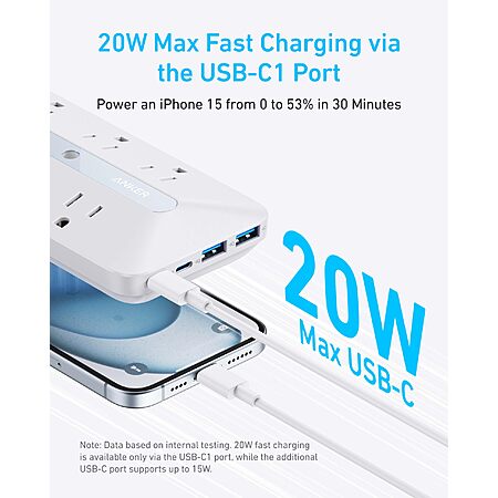 $15.99*:Anker 300J 10-in-1 Wall Charger(6 AC, 2 USB A, 2 USB C Ports, 20W Fast Charging)
