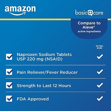 $6.53 for 200 count Amazon Basic Care Naproxen Sodium Tablets (generic Aleve) Pain Reliever
