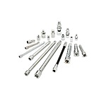 | Product Description: | The Husky 19-Piece 1/4 in., 3/8 in., 1/2 in. Drive Accessory Set includes a variety of extensions, adapters, and universal joints that are made from alloy steel for strength and long-lasting performance. The finish provides resistance to corrosion. The chamfered lead-ins on both ends allows for quick and easy attachment to drive tools and sockets. Set includes 9 standard extensions - 1/4" drive (3" & 6"), 3/8" drive (1-1/2", 3", 6", & 10"), 1/2" drive (3", 5", &10"), 3/8" drive flex extension (8"), drive adapters (1/4"F to 3/8"M, 3/8"F to 1/4"M, 3/8"F to 1/2"M, and 1/2"F to 3/8"M), universal joints (1/4", 3/8", and 1/2") and bit adapter sockets (1/4" & 3/8" drive). |