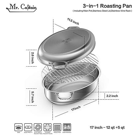 Mr. Captain 3-in-1 18/10 Stainless Steel 17" Roasting Pan with Rack and Lid $49.99 + Free Shipping