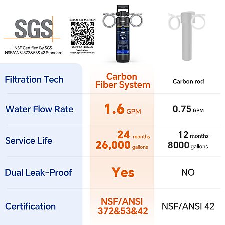 - 26000 GALLONS SERVICE LIFE - With a prolonged lifespan, it is recommended to replace the filter every 24 months or 26,000 gallons for optimal performance (depending on your filtered water consumption). Save over 50% on each replacement filter. Maximum water flow rate of 1.6gpm to filter a glass of water in just 3.5 seconds, meeting your household's need for high-quality water. Suitable for kitchen, bathroom, RV, or office and so on