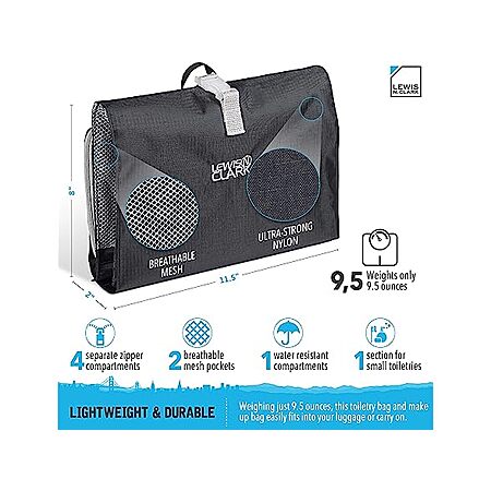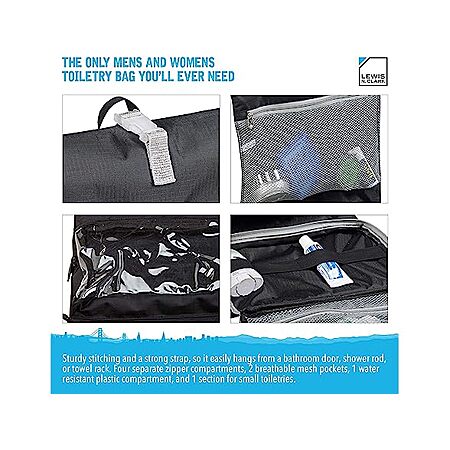 Lewis N. Clark Hanging Toiletry Bag w/ Wet/Dry Separation (Black) $9.81 + Free Shipping w/ Prime $7.99