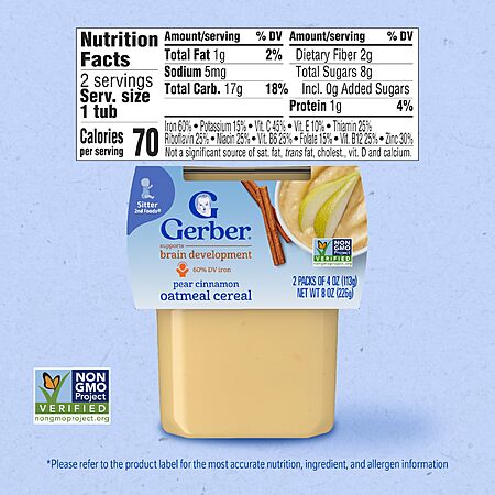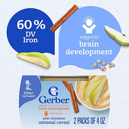 - This baby oatmeal cereal has 60% of the daily value of iron to help support brain development