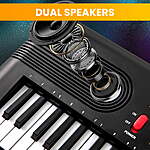| Product Description: | Discover the perfect blend of versatility and portability with the 61 keys digital keyboard piano. Equipped with an impressive array of 100 timbres, 100 rhythms, and exclusive dual speakers, it ensures superior sound quality and endless creativity. The 61 keys keyboard piano operates on both cable charging and battery power, adapting to your lifestyle. And you can connect seamlessly thanks to the audio output and microphone input, ensuring you're concert-ready at any moment. Not just an instrument but also the perfect gift for beginners, the electric piano features intuitive tools like a recording function, tempo control, sustain, metronome and so on, which make learning both straightforward and enjoyable. Moreover, it is convenient to carry with storage bag. Feature Expansive sound library with 100 timbres, 100 rhythms, 5 percussions and 61 keys Audio output and mic input for enhanced connectivity Lightweight design with a convenient carry bag Dual speaking system for enriching audio clarity Functions includes programme, key drum, volume, record, playback, etc Available in cable charging and 4 x AA batteries supplying (not included) Keynote stickers included to aid learning Ideal gift option for aspiring musicians Specification Color: Black Material: PS Keyboard Dimension: 23" x 7" x 2"(L x W x H) Power Cord Length: 6.5 ft Power Input: 100V-240V~50/60Hz Power Output: 5V 1A Battery: 4 AA batteries (not included) Net Weight: 2.2 lbs Package Includes: 1 x Electric Keyboard Piano 1 x Music Stand 1 x Keynote Stickers 1 x Microphone 1 x Power Adapter 1 x Carry Bag 1 x User Guide Rich Functions: Elevate your musical experience with the digital keyboard piano that boasts 100 tones, 100 rhythms, 10 demons, and 5 percussions. Alongside 61 keys and dual speakers, it includes an array of functionality such as programming options to tailor your sound setup, perfect for enhancing your music creation easily and efficiently. Multiple Connections: The kids piano keyboard features a robust power supply interface, a convenient audio output for earphone, and a microphone input. It is ideal for seamless integration into your existing setup whether you're practicing at home or performing live. 2 Power Options: Never miss a beat with dual power capabilities. Power your musical sessions via cable charging or go wireless with 4 x AA batteries (not included). This feature ensures that your creativity can continue anytime, anywhere, without relying on direct power sources. Portable Design: Designed for musicians on the go, this 61 keys keyboard piano is lightweight and comes with a compact storage bag for easy transportation. Besides, the detachable music stand adds further convenience, enabling you to set up your playing station easily. Perfect Gift: With recording capability, tempo adjustment, sustain and metronome functions, the electronic keyboard is a thoughtful present for beginners, introducing someone to the joy of playing piano. Additionally, the provided keynote stickers are ideal to guide learning. |