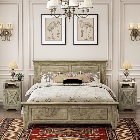 Set of 2 RoyalCraft Farmhouse Nightstands w/ Charging Station (Light Grey) $97.60, White $100.80 + Free Shipping