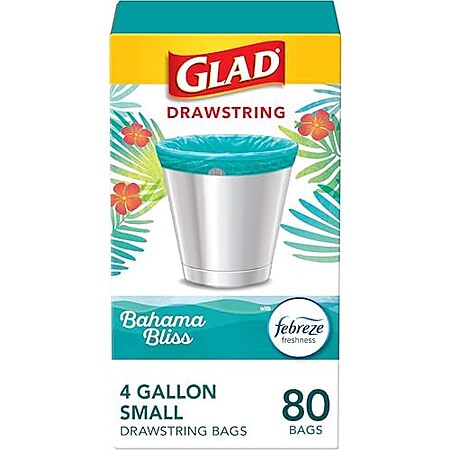 [S&S] $9.11*: 80ct 4-Gallon Glad Small Drawstring Trash Bags (Febreze Bahama Bliss) at Amazon