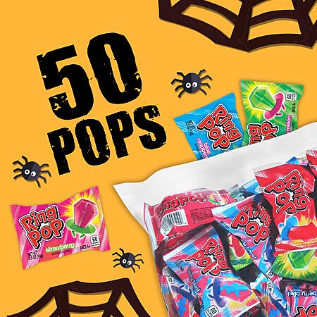 Model: Ring Pop Halloween Candy Lollipops - 50 Ct Bulk Candy Variety Pack in Assorted Fruity Flavors - Full Size, Individually Wrapped Hard Candy For Trick or Treat, Halloween Bowls, Gifts, Party Favors