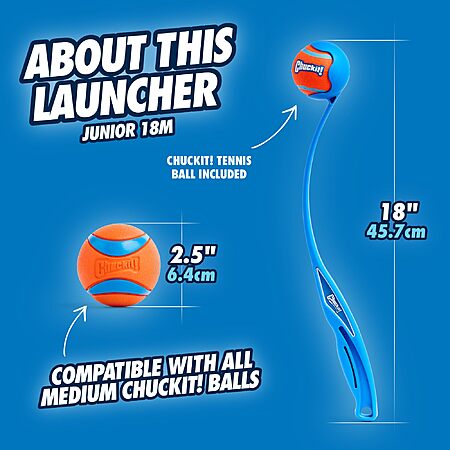 Amazon has the lowest price at $6.68 for the Chuckit! Dog Ball Launcher Junior 18" with a medium (2.5") ball. Elsewhere, such as at Petco or Chewy, the launcher with ball costs over $10.