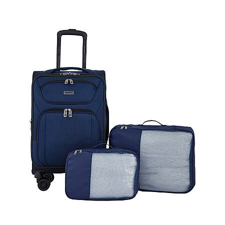 3-Piece Travelers Club Rolling Soft Side Travel Luggage w/ 22" Carry-On (Navy Blue Peony) $18.77 + Free S&H w/ Walmart+ or on $35+