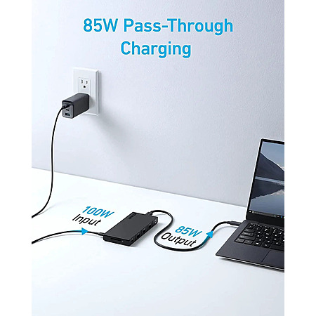 - Powerful Pass-Through Charging: Supports up to 85W pass-through charging so you can power up your laptop while you use the hub. Note: Pass-through charging requires a charger (not included).