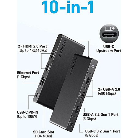 - What You Get: Anker 364 USB-C Hub (10-in-1, Dual 4K HDMI), welcome guide, our worry-free 18-month warranty, and friendly customer service.