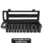 • SAE: 11-piece set includes 1/2" drive deep impact sockets in SAE sizes 7/16", 1/2", 9/16", 5/8", 11/16", 3/4", 13/16", 7/8", 15/16", 1", and 1-1/16"