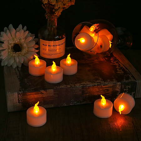 | Product Description: | Specification Color: Warm Amber Yellow Material: Plastic + LED Size: 3.5 x 4 cm Appearance color: White Battery: CR2032 Package Includes: 24 Pack LED Tea Lights Features Safe to use on any occasion, no flames or smoke. Design to flickering like the real candle, create a warm and romantic atmosphere. It's an excellent gift choice for friends or family during Christmas, Halloween, Thanksgiving, Easter, New Year. Easy to switch by the ON/OFF button, fit in most of candle holder or luminary bag. Suitable for families with pets or young children. Perfect for home, bars, hotel, parties, birthday, holidays, weddings, or other occasions. Battery-powered (battery included & installed) amber color LED tea light candles provide realistic flickering effect, ideal for accent decorations for holiday celebrations, wedding ceremonies, special occasions such as birthdays and anniversaries, memorial services, church gatherings, DIY projects and etc. Wind-proof for both indoors and outdoors use, at homes, restaurants, churches, schools, backyards, sports venues and etc. Better safe than sorry, these candles are flameless and smoke-free, absolutely no fire hazards or burning risks, safe for families with pet(s) or young child(ren) Long-life, energy-efficient, and environment-friendly LED light powered by one single CR2032 replaceable button cell (included and installed), estimated to last over 100 hours with one new battery A generous package of 24 candles with batteries included and installed, ready to use and easy to turn on or off with a sliding switch. Standard size tea light candles fit into any votives, tea light holders, and luminary bags Genuine NEWEEN tea light candles sold exclusively by NEWEEN. Each LED tea light candle is thoroughly and rigorously tested, guaranteed to work out of the box, or each defective unit will be replaced with one dozen candles or a full refund for the purchase. One-year risk-free and hassle-free manufacturer’s warranty ensures customer satisfaction |