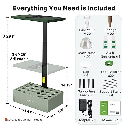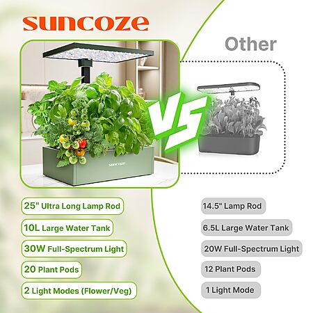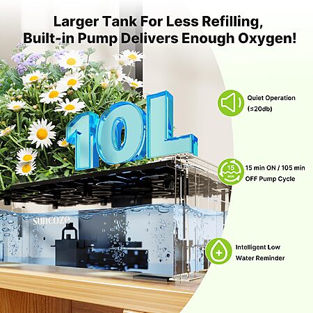 SUNCOZE 20 Pods Hydroponics Growing System Kit with 10L Large Water Tank+ Free shipping $58.49 -Amazon