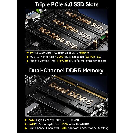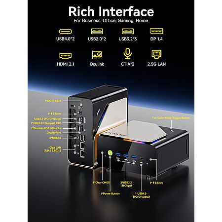 GMKtec EVO-T1 AI Mini PC: Ultra 9 285H, 96GB DDR5, 2TB SSD, OCulink, 3X M.2 Expansion Slots $1111.49