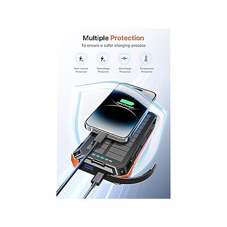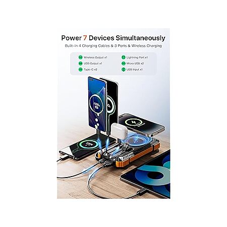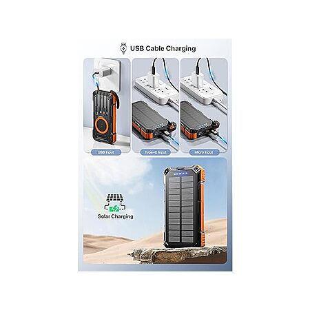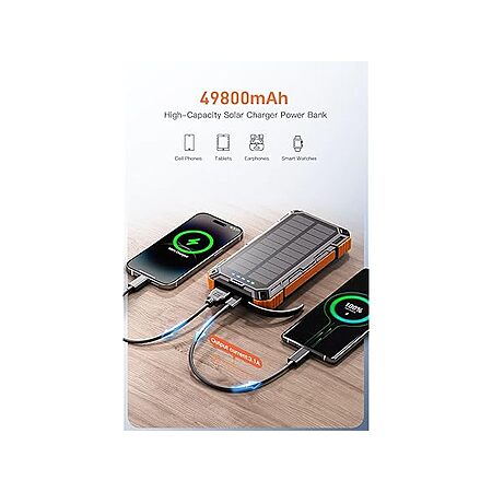 Solar Charger 49,800mAh Power Bank with 4 Built-in Cables and LED Flashlight $34.99