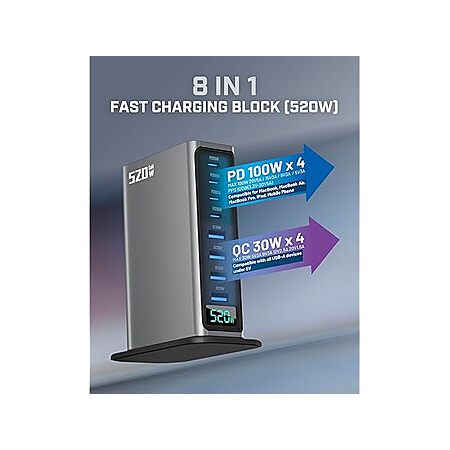 8 Ports GaN 520W USB C Charger Block