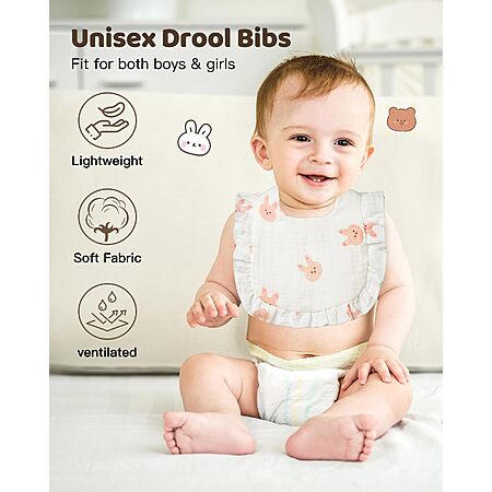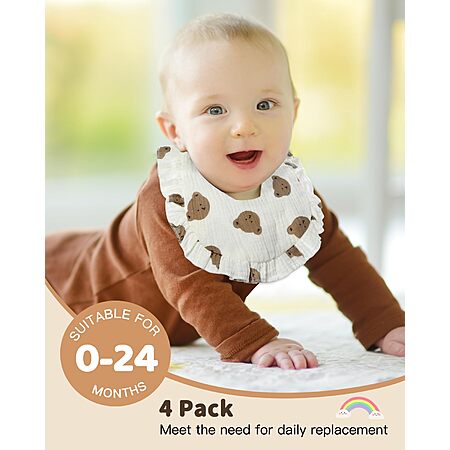 4-Pack Muslin Drool Bibs - Soft, Absorbent & Cute $5.99