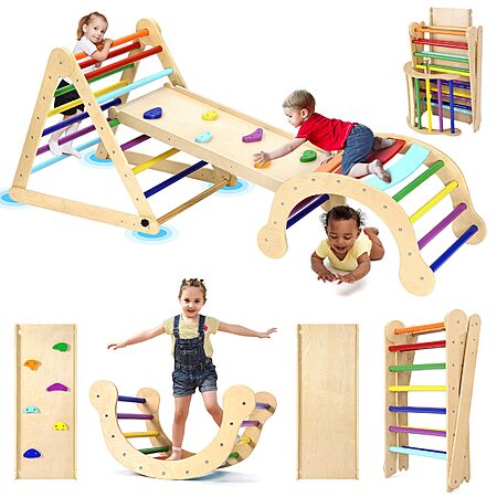 YOLEO Large Pikler Triangle Set 7-in-1, Climbing Toys Jungle Gym for Kids -- Amazon - $81 $80