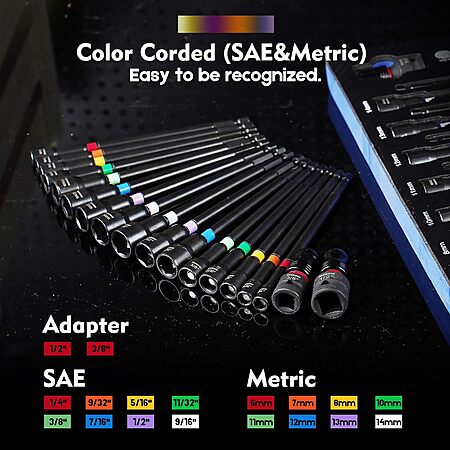18-Piece Facoow 6" Long Color-Coded Impact Nut Driver Set $16.79 + Free Shipping w/ Prime or on $35+