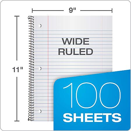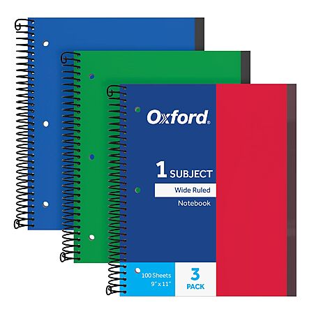 3-Pack 100-Sheet Oxford Spiral Notebooks (8.5"x11"; 1 Subject, Wide Rule, Plastic Covers w/ 1 Pocket) $2.70 + Free Shipping w/ Prime or on $35+