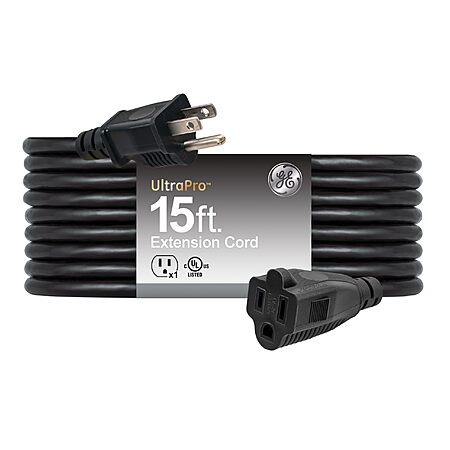 GE Outdoor Extension Cord, 15 Ft, Heavy Duty 16AWG 3 Prong, 13 Amp, UL Listed, Black, 50369 Free Shipping w/ Prime or on orders $35+ | $8.39 at Amazon