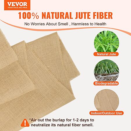 - Warm Tips: Due to the jute material, the burlap itself will have some smell. We may suggest you place it in a well-ventilated area till the smell disappears.