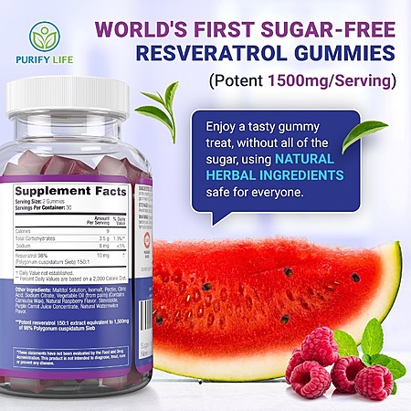 60-Count (30 Serv) Purify Life Sugar-Free Resveratrol Gummies $12.57 w/ Subscribe & Save + Free Shipping w/ Prime or $35+ orders
