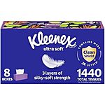 - Includes 8 flat boxes of Kleenex Ultra Soft 3-ply facial tissues (180 per box, 1,440 total)