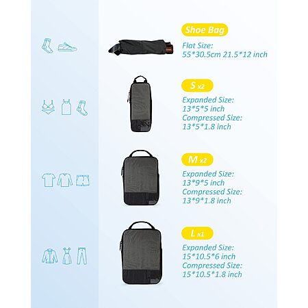 BAGSMART 6 Set Compression Packing Cubes for Travel, Lightweight Vacation Travel Essentials for Men, Travel Accessories for Suitcase Organizer Bags Set - $29.99