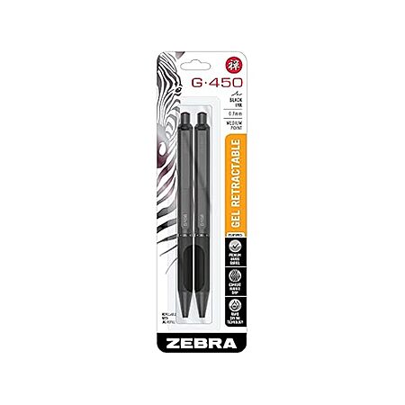 $6.99*:2-Pack Zebra Pen G-450 Retractable Gel Pen, Black Brass Barrel, Medium Point, Black Ink (49512)