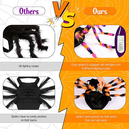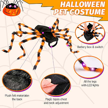 KyFree 48 LED Spider Dog Halloween Costume for Dogs, Furry Giant Spider with Orange Purple Lights Dog Halloween Cosplay - Medium $9.99