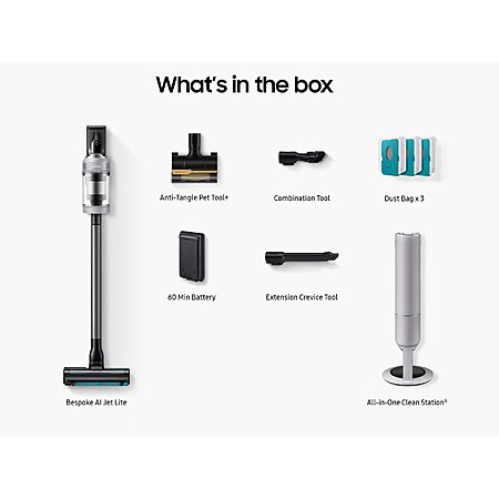 Samsung Bespoke AI Jet Lite Cordless Stick Vacuum w/ All-in-One Clean Station & 280W Suction Power (Pebble Grey) $549.99 + Free Shipping