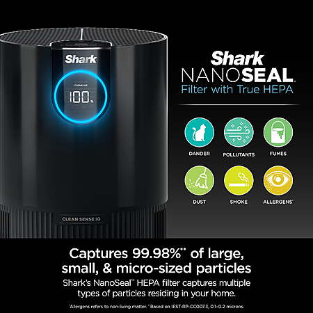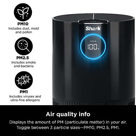 | Product Description: | The Shark Air Purifier uses Pure Air MicroForce to deliver fast, powerful, and quiet purification in a compact size. Clean Sense IQ senses air quality and auto-adjusts to maintain clean air in your home, while reporting results in real time. A HEPA filter captures 99.98% of airborne particles like allergens*, dust, and dander (based on IEST-RP-CC007.3, 0.1-0.2 microns). Cleans spaces up to 500 square feet, based on 1 air change per hour. Perfect for bedrooms, offices, nurseries, and more.*“Allergens” refers to non-living matter. POWERFUL PURIFICATION: Pure Air Microforce uses a powerful fan to deliver fast, powerful, and quiet purification in small, compact canister design CLEAN AIR COVERAGE: Powerfully purifies spaces up to 500 square feet, based on 1 air change per hour. Perfect for bedrooms, offices, nurseries, and more ANTI-ALLERGEN HEPA MULTI-FILTER: Sharks Anti-Allergen** NANOSEAL Filter with true HEPA captures 99.98% of large, small, and micro-sized particles (based on IEST-RP-CC007.3, 0.10.2 microns). *Allergens refers to non-living matter TRACKS & ADJUSTS AUTOMATICALLY: Clean Sense IQ tracks air quality and auto-adjusts power to constantly maintain clean air in your home. The easy-to-use control panel displays data in real time COMPACT POWER: Powerful purification in a small, compact canister design REPLACEMENT FILTERS: Purchase replacement filters every 6-12 months, based on continuous use. To purchase Shark Replacement filters, search for HE1FKBAS. Genuine Shark Filters ensure your air purifier will function and filter properly, off-brand filters can lead to lower reliability and cause damage AIR QUALITY: Clean Sense IQ measures three particle sizes:, PM1, PM2.5, and PM10 WHAT'S INCLUDED: Shark Air Purifier and Nanoseal HEPA filter |