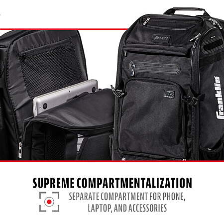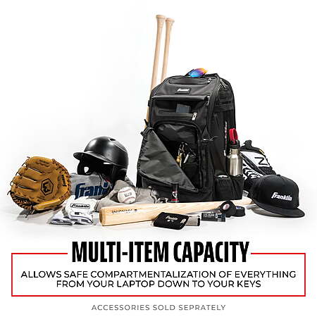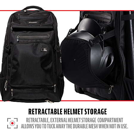 | Product Description: | If you’re looking for a strong, reliable youth baseball bag, Franklin Sports has you covered with the MLB Traveler Elite Baseball Backpack. Designed to be a rugged, dependable youth baseball bag, this sturdy backpack was built for baseball and softball. Go from backyard to field with this water-resistant baseball bag backpack. Use the self-stick external strap to securely attach baseball batting gloves, while the deep, spacious interior holds up to four bats, baseballs, cleats, and more with ease. Our baseball youth backpack also includes retractable helmet storage. This bag goes beyond your average youth baseball bat bag. It’s made with water-resistant nylon, so it doubles as a bag for your laptop, cell phone, and other electronics. Carry everything in style with a front pocket that can be removed to add custom embroidery and make it your own. With neutral colors including black, grey, and chrome white, it doubles as a baseball bag or a softball bag. Whether your star player is batting, pitching, or tearing up the outfield, you can feel confident that this youth baseball backpack will go where they go, providing dependable storage for all their stuff. Measures 22” H x 10” D x 14” W. When you want an official baseball sports bag that’s designed for America’s favorite pastime, look no further than the Franklin Sports MLB Traveler Elite baseball backpack. Made to fit a youth’s smaller frame, it’s the baseball bag you’ll turn to season after season for reliable, accessible storage of all your baseball gear. ELITE BACKPACK: Holds much more than a typical baseball bag, including quad bat storage, space for cleats, and all other gear in a convenient, easy-to-carry backpack baseball bag. GLOVE AND HELMET STORAGE : This baseball back pack comes with a convenient, external batting glove zone for easy carrying and a retractable helmet storage system to comfortable adjust to all helmet sizes. WATER-RESISTANT POLYESTER: The water-resistant polyester material makes this the perfect bag to store more than baseball gear. Use it to store your laptop, cell phone, and other electronics out of the rain and moisture. CARRY ALL YOUR GEAR: Franklin Sports’ baseball backpack is designed with deep, spacious pockets and is strong enough to hold everything safely and securely. Rugged and dependable season after season. REMOVABLE FRONT POCKET: The front pocket can be removed easily to add custom embroidery, such as your child’s name or team logo. A great way to customize your baseball backpack! |