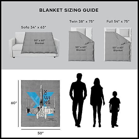 50" x 60" Star Wars Northwest Throw Blankets: X-Wing Blueprint, R2-D2 Astromech Droid & More $11.45 + Free Shipping w/ Prime or on $35+