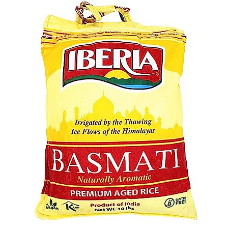 Amazon[amazon.com] has 10-Pound Iberia Premium Aged Indian Basmati Rice for $13.85 - 5% when you check out via Subscribe & Save = $13.16. Shipping is free with Prime or on $35+ orders.