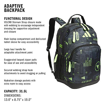 19" adidas Adaptive Backpack (Black/Lucid Lemon Yellow) $17.61 + Free Shipping w/ Prime or on $35+