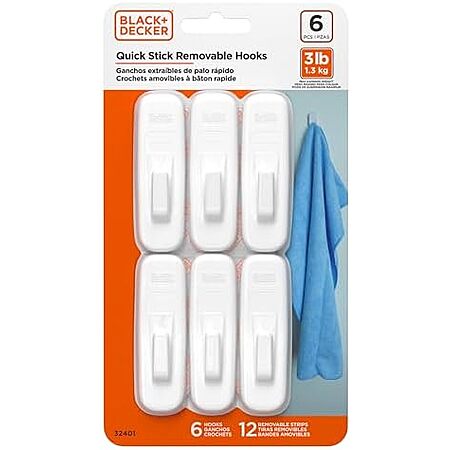 $4.63: 6-Count BLACK+DECKER Solid Wall Hooks at Amazon