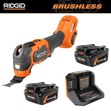 RIDGID 18V MAX Brushless Cordless Multi-Tool + 2x 4.0 Ah Batteries & Charger (AC8609340SB-R86242B) on sale for