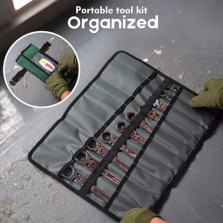 Small Wrench Roll Bag: A removable wrecnh roll tool organizer bag made of Oxiford fabric with grip handle, can be carried alone.