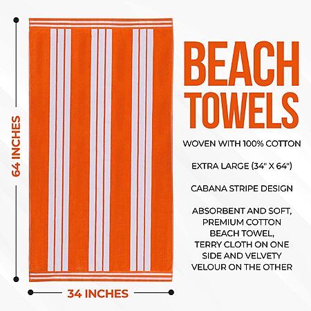 34" x 64" Superior 100% Combed Cotton Oversized Cabana Stripe Beach Towel (Orange) $8.47 + Free Shipping w/ Prime or on $35+