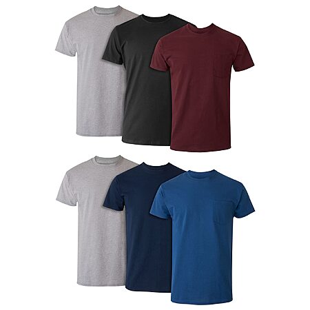 6-Pack Hanes Men's Cotton Crewneck Pocket T-Shirts (Assorted, Small & Medium Only) on sale for