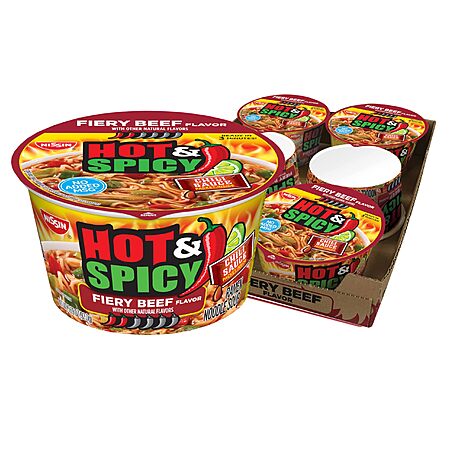 6-Pack 3.28-Oz Nissin Hot & Spicy Ramen Noodle Soup (Fiery Beef) $5.31 + Free Shipping w/ Prime or on orders over $35