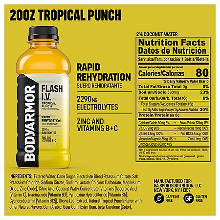 12-Pack 20oz BODYARMOR Flash I.V. Electrolyte Beverage (Tropical Punch)