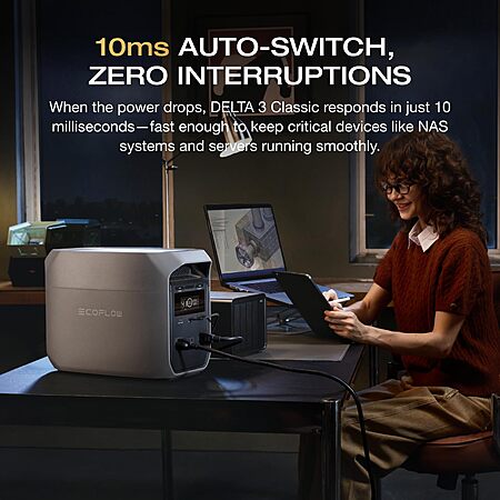 <10ms UPS: Protect sensitive electronics like PCs, servers, and medical devices. DELTA 3 Classic automatically switches to battery in under 10ms, preventing downtime, data loss, or interruptions.